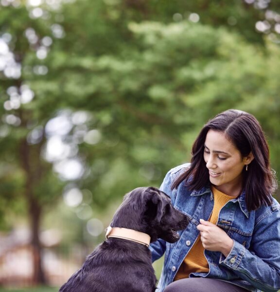 July 23, 2025 In pharma-campaign-outdoor-exercise-Oxybate_women-with-dog a women plays with her dog in the park.
